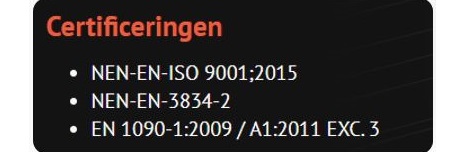 For example, NEN-EN-ISO 3834-2 is an internationally recognized quality system for welding, indicating that this company has all the knowledge to work with certified welders.