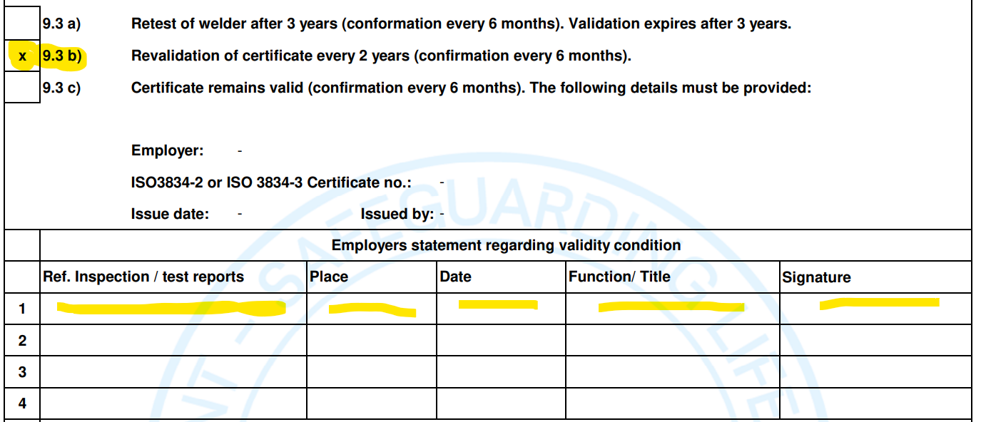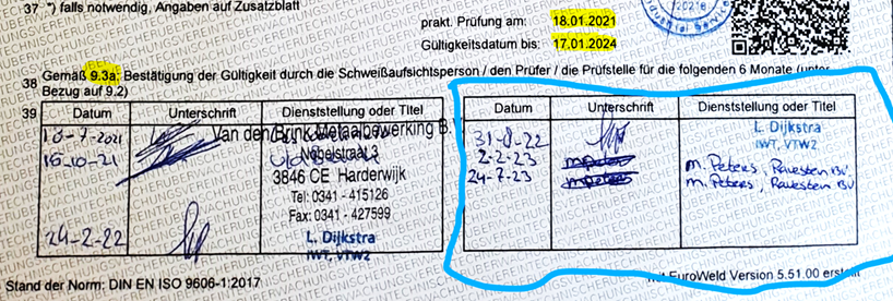NEN-EN-ISO 3834-2 or the Exc class, there must be a stamp on the document every six months in
