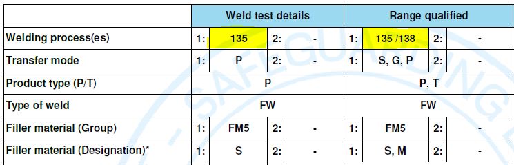 Welding process numbers: