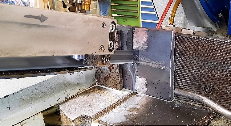 Het werkstuk wordt door gezaagd