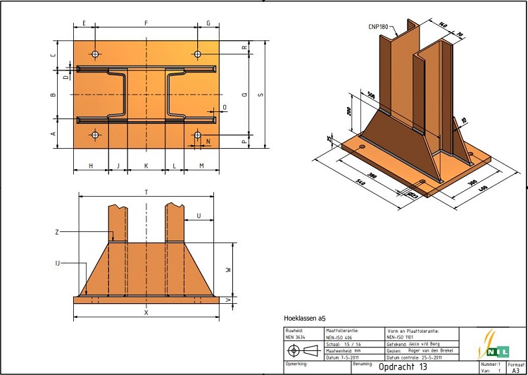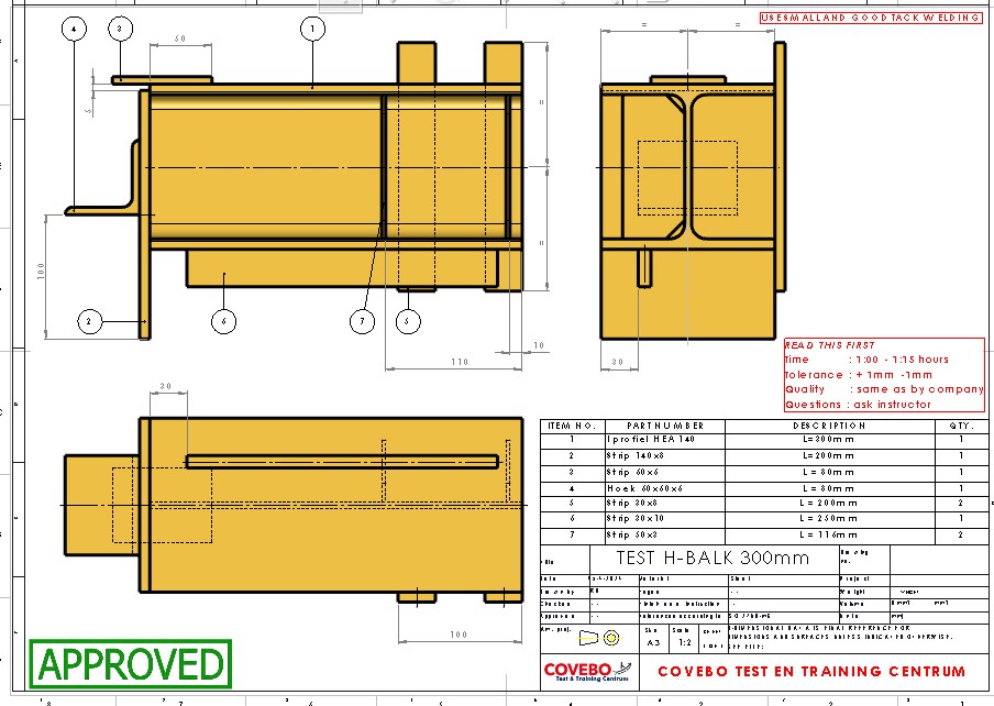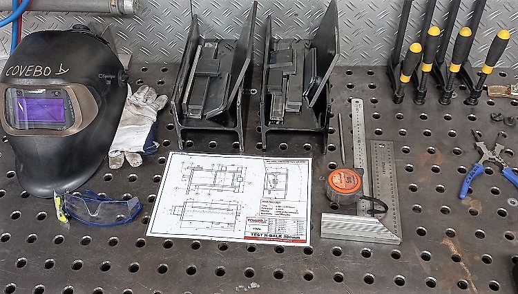 Ten element to belka H, na której muszą być zamocowane różne płytki. Kandydat otrzymuje stół roboczy ze wszystkimi narzędziami pomiarowymi i niezbędnymi materiałami.